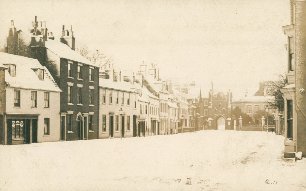 - [01:31] Postcard of wintry scene in Wednesday Market, Beverley, c.1908. Archives Ref: DDX2111/2/1.